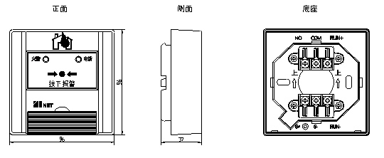 三、J-SAP-EIN20型手動火災(zāi)報警按鈕外形及安裝尺寸